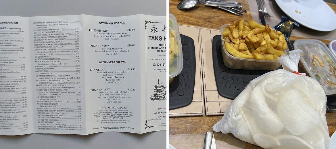 Welcome to Taks House, your go-to destination for irresistible Chinese cuisine in Oadby, Leicester. With a diverse menu that includes favorites like curry, special fried rice, and chicken in black bean sauce, we're dedicated to offering delicious meals for both takeaway and dine-in. Enjoy a casual atmosphere with wheelchair-accessible seating, perfect for family dinners or quick bites any night of the week. Our late-night offerings and commitment to accommodating dietary needs ensure a satisfying experience for everyone. Plus, with convenient payment options and free street parking, your next meal is just a phone call away. Discover why Taks House has been a local favorite since 1984!The massive menu, with 114 varied plates, consistently impresses customers at Taks House. Diners rave about the spicy chicken in black bean sauce and the special fried rice, often noting that these dishes are standout options. The fresh prawn crackers offered with orders over £12 are a delightful touch that guests appreciate. Many recognize the friendly service, particularly from Connie, who always welcomes newcomers and regulars alike. The atmosphere remains casual yet inviting, making it a perfect local spot to unwind with delicious food. Additionally, the garlic chips receive particular love, adding a flavorful crunch to every meal.